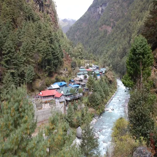 You will pass through Cheplung and Ghat villages, enjoying views of lush green valleys, pine forests, and the beautiful Dudh Koshi River. This region follows Buddhism, so you’ll see prayer flags, mani walls, and stupas along the way. After around 3–4 hours of walking, you’ll reach Phakding, a peaceful riverside village known for its lodges, bakeries, and tea houses. You'll stay overnight at a lodge in Phakding.